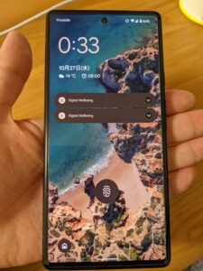 Pixel5だとセンサーに指を押し込んだ瞬間に解錠されますが、Pixel6は画面上のセンサーに指を押し込んで0.5秒程度待たされてから解錠される感じです。
