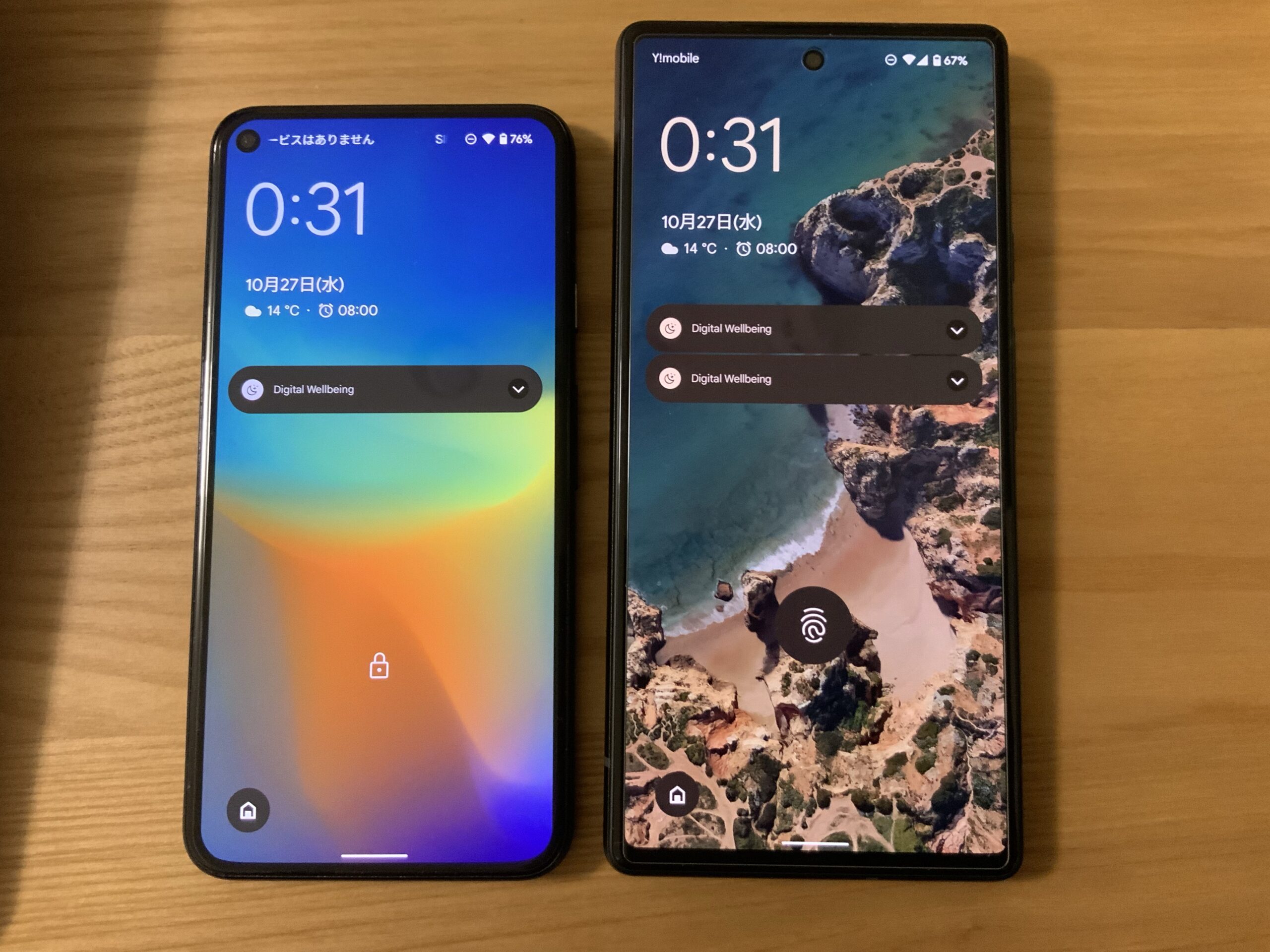 Pixel5と比較すると指紋認証の速度がワンテンポ遅いです。